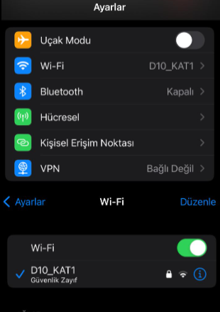 Bağlı olduğunuz veya ayarını değiştirmek istediğiniz Wi-Fi ağının yanında bulunan (i) bilgi simgesine dokununuz.