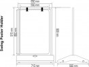 Çift taraflı Swing Poster Tutucunun siyah 25 mm çapında toz boyalı metal boru çerçevesi, su tabanı ve kayışları siyah renkte üretilmektedir.